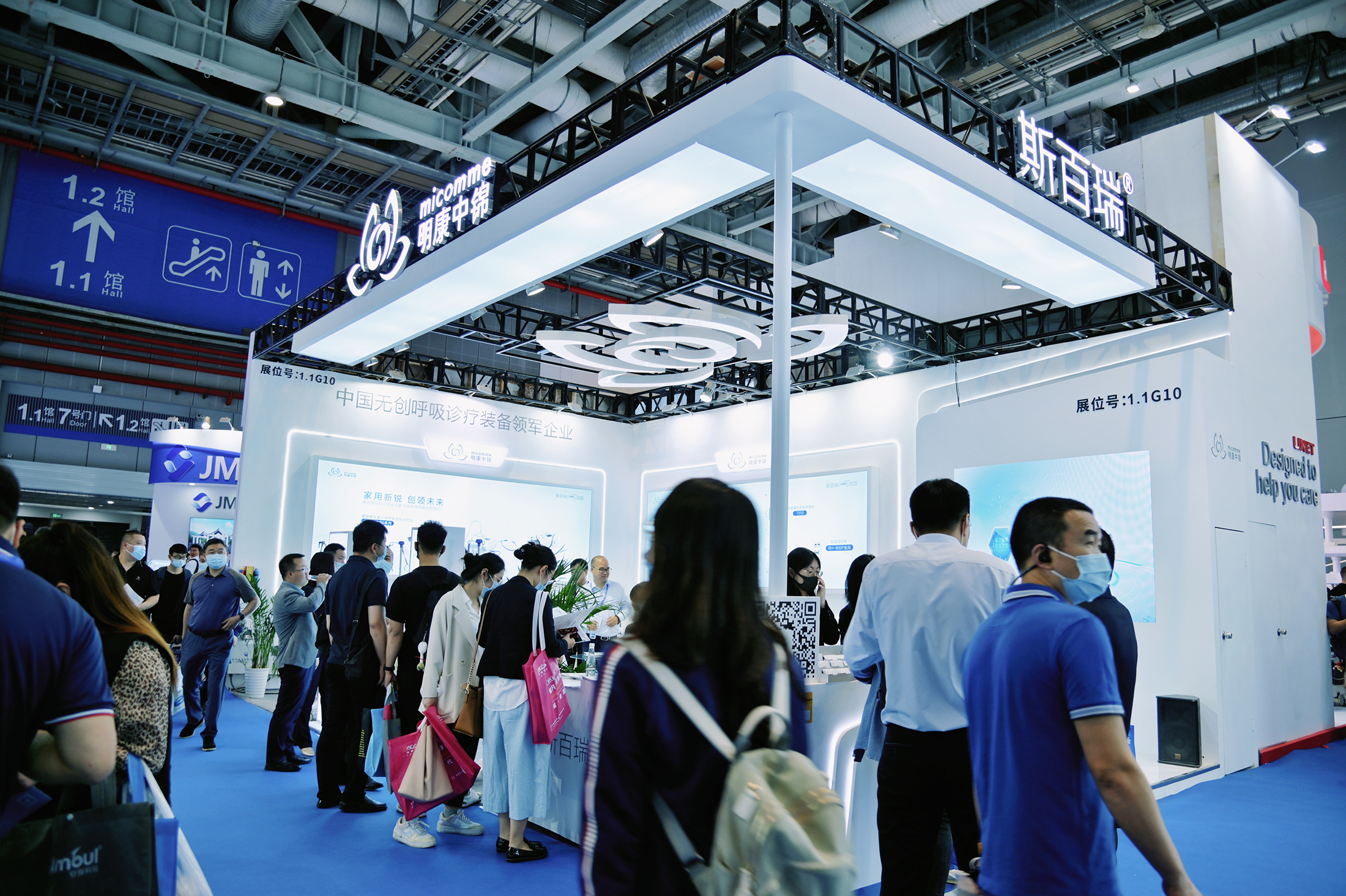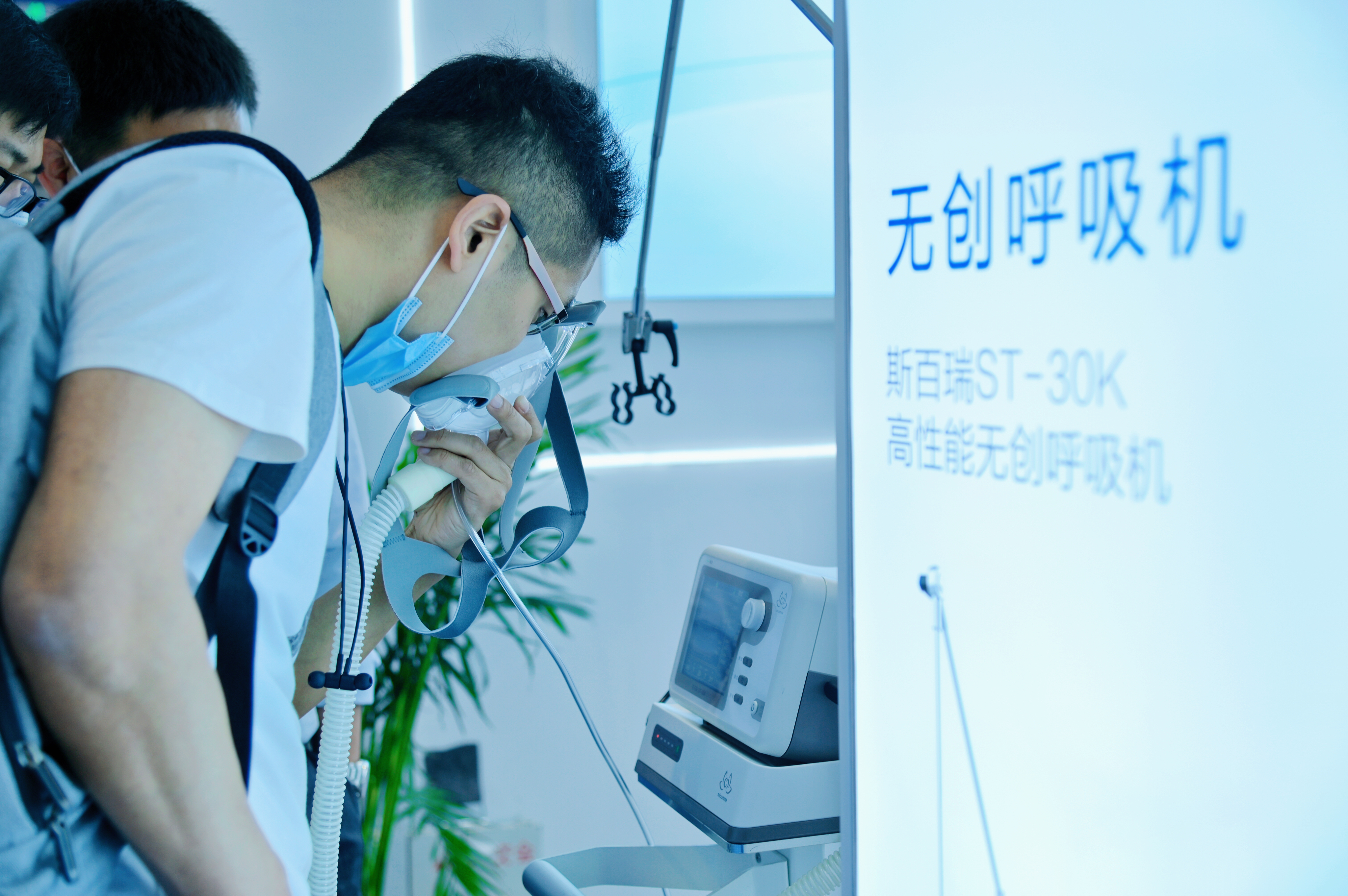 明康中锦展位以“医用群星 焕新而至、家用新锐 创领未来”为主题,涵盖斯百瑞高性能医用无创呼吸机、高流量无创呼吸湿化治疗仪、家用无创呼吸机等产品展示区,直观展现了斯百瑞高端呼吸诊疗设备智能化的全面升级。
