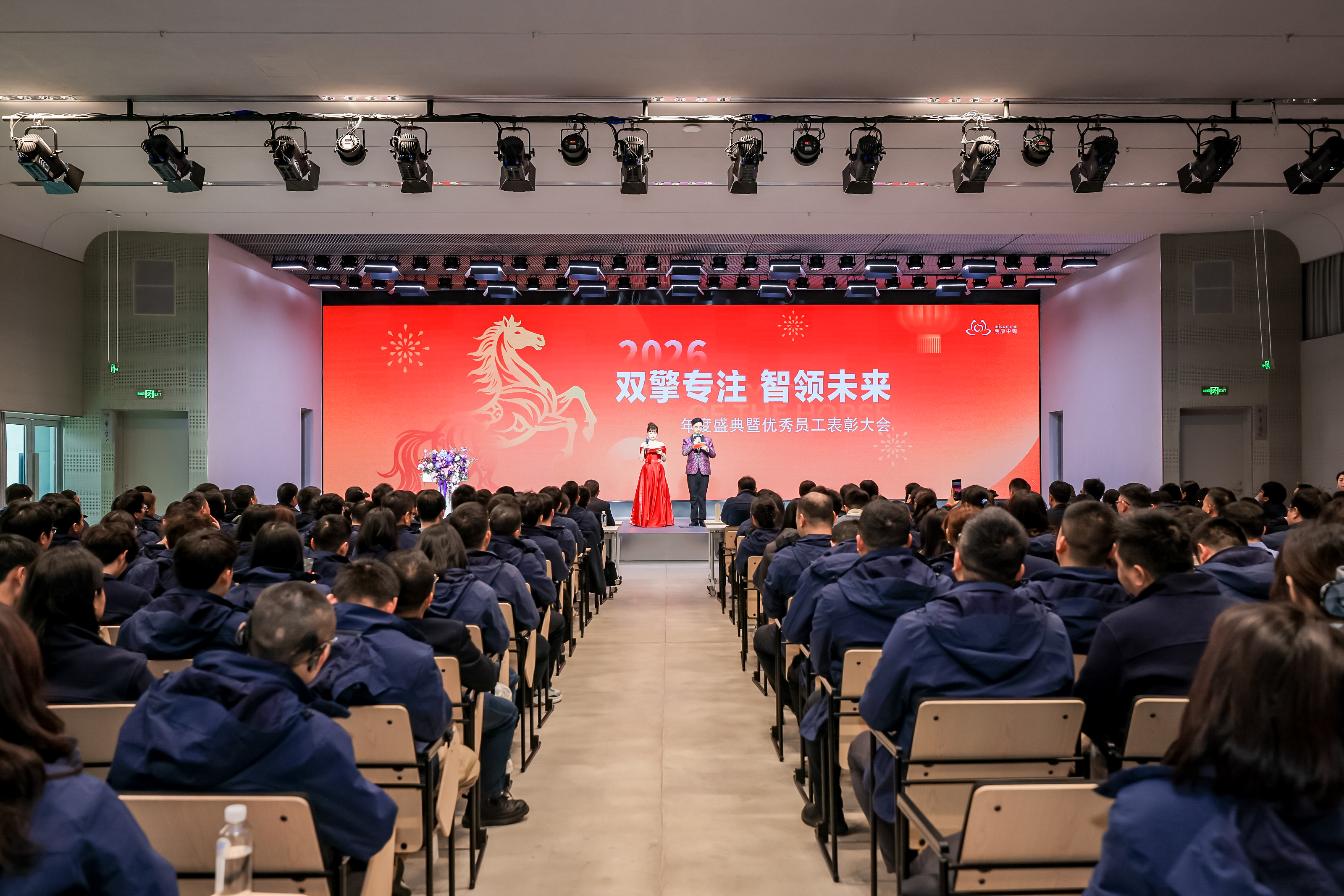 岁序更替,华章日新。2026年2月8日,明康中锦“双擎专注 智领未来”年度盛典暨优秀员工表彰大会隆重举行。全体明康人欢聚一堂,回望2025年的奋斗足迹,共启2026年的崭新篇章。年会在庄严的国歌声中拉开序幕。全体明康人肃立齐唱,目光坚定,展现出明康人不忘初心、砥砺前行的坚定信念。